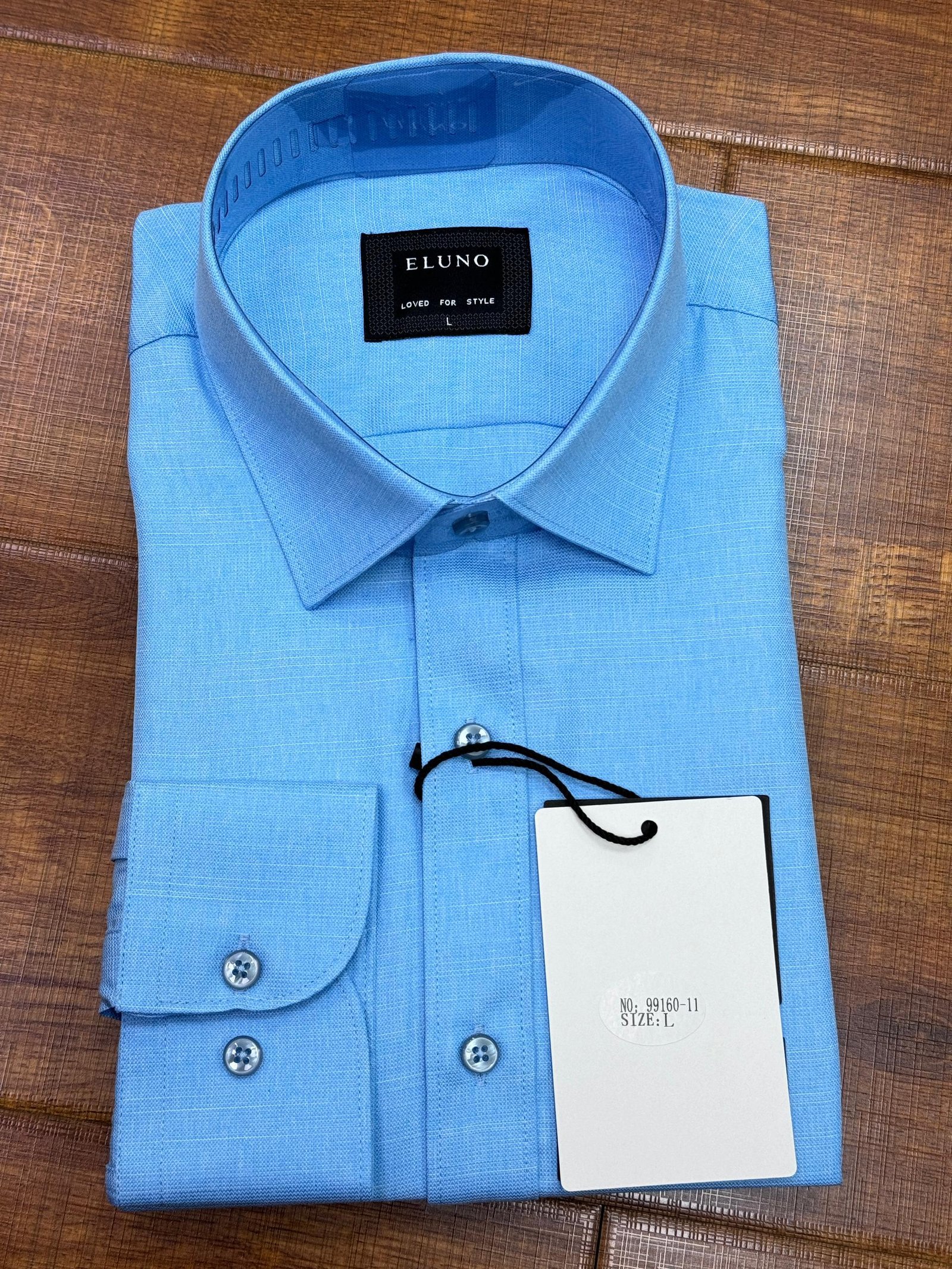 Apresentamos a Camisa Social Eluno, uma peça essencial para o guarda-roupa masculino. Confeccionada em tecido de alta qualidade na cor azul-claro, ela oferece um caimento impecável e um toque suave na pele, garantindo conforto durante todo o dia. O design clássico de colarinho e os botões discretos fazem dela a escolha perfeita para ambientes de trabalho, eventos sociais ou para um visual casual chic. Eleve seu estilo com esta peça atemporal.
